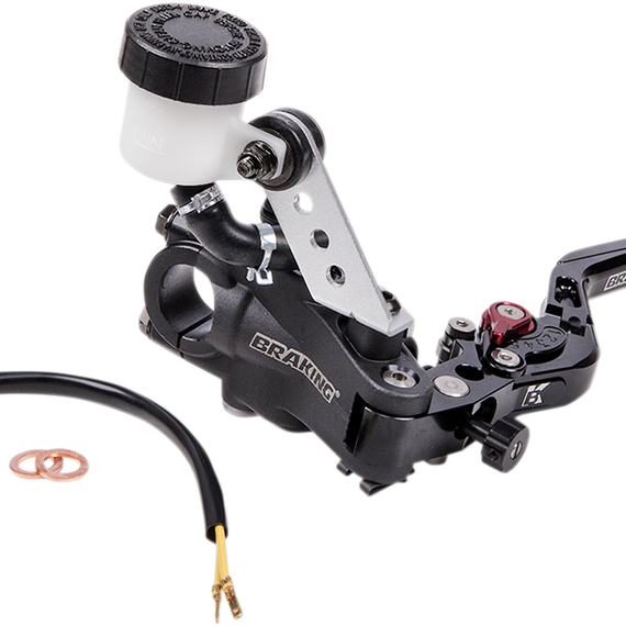 Caracteristicas: Master cylinder with a 16 mm diameter piston Cast aluminum construction Includes a long folding-type lever For use with remote reservoir