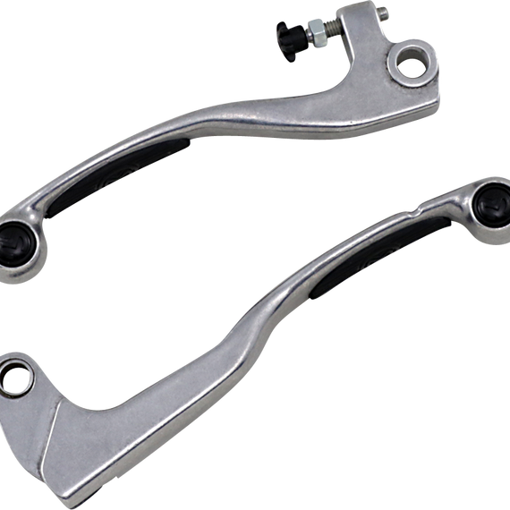Caracteristicas: Cast aluminum lever sets with silicone grip inserts and anti-friction bronze bushings High-quality polished cast aluminum construction Levers approximately 1" shorter than OEM Compatible with OEM or Moose Racing perches Sold in pairs (1 brake lever and 1 clutch lever)