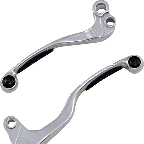 Caracteristicas: Cast aluminum lever sets with silicone grip inserts and anti-friction bronze bushings High-quality polished cast aluminum construction Levers approximately 1" shorter than OEM Compatible with OEM or Moose Racing perches Sold in pairs (1 brake lever and 1 clutch lever)