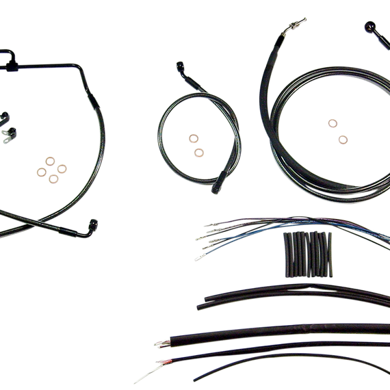 • Kits include throttle and idle cables of throttle-by-wire extensions, clutch cable or hydraulic clutch line, brake lines, copper crush washers, hardware, and any necessary switch wiring of turn signal extension