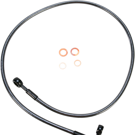 Caracteristicas: Housing length is measured from the center of the banjo hole at the master cylinder to the flat part of the 90° at the caliper E-Z Align rotating caliper banjo feature allows for perfect no-kink fitments Fittings offered are in 7/16" or 10 mm sizes, with 90°, 180°, 35°, and 60° degree bends. The caliper banjo will be a 90°or a 60° 10 mm E-Z Align rotating caliper banjo