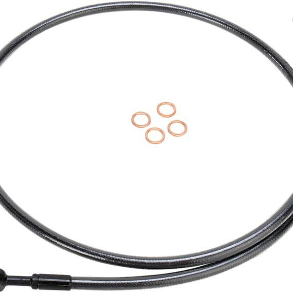 Caracteristicas: Housing length is measured from the center of the banjo hole at the master cylinder to the flat part of the 90° at the caliper E-Z Align rotating caliper banjo feature allows for perfect no-kink fitments Fittings offered are in 7/16" or 10 mm sizes, with 90°, 180°, 35°, and 60° degree bends. The caliper banjo will be a 90°or a 60° 10 mm E-Z Align rotating caliper banjo
