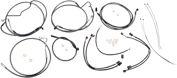 • Kits include throttle and idle cables of throttle-by-wire extensions, clutch cable or hydraulic clutch line, brake lines, copper crush washers, hardware, and any necessary switch wiring of turn signal extension
