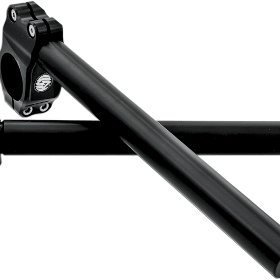 Caracteristicas: Mount to front forks, below top triple clamp for a low handlebar position Adjustable to any pullback and any height between top and bottom triple clamps Fixed 5° down angle CNC machined from billet aluminum Accept stock or aftermarket HD hand controls, slotted for external wiring Made in the U.S.A.