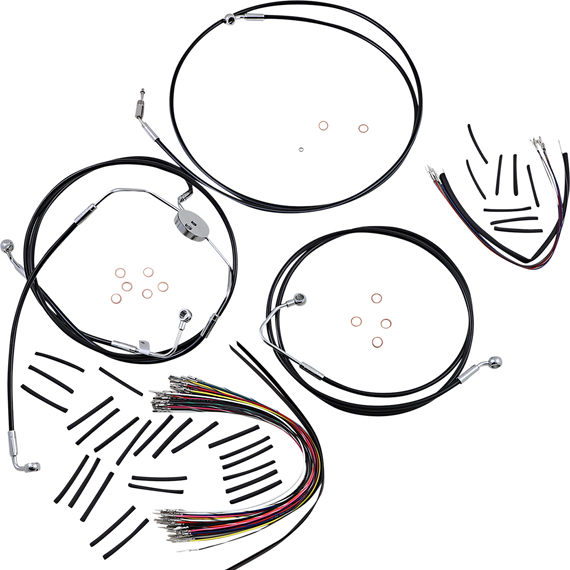 • Kits include throttle and idle cables or throttle-by-wire extensions, clutch cable or XR hydraulic clutch line, XR brake lines, copper crush washers, hardware, turn signal and switch wiring extensions