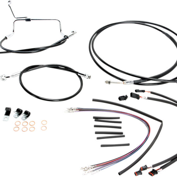 • Kits include throttle and idle cables or throttle-by-wire extensions, clutch cable or XR hydraulic clutch line, XR brake lines, copper crush washers, hardware, turn signal and switch wiring extensions