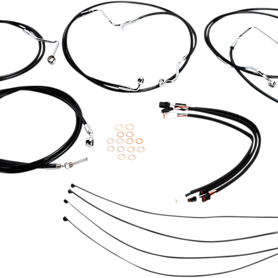 • Kits include throttle and idle cables or throttle-by-wire extensions, clutch cable or XR hydraulic clutch line, XR brake lines, copper crush washers, hardware, turn signal and switch wiring extensions