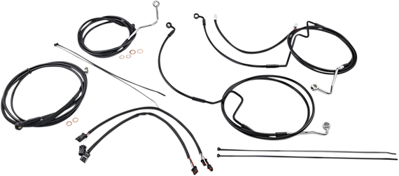 • Kits include throttle and idle cables or throttle-by-wire extensions, clutch cable or XR hydraulic clutch line, XR brake lines, copper crush washers, hardware, turn signal and switch wiring extensions
