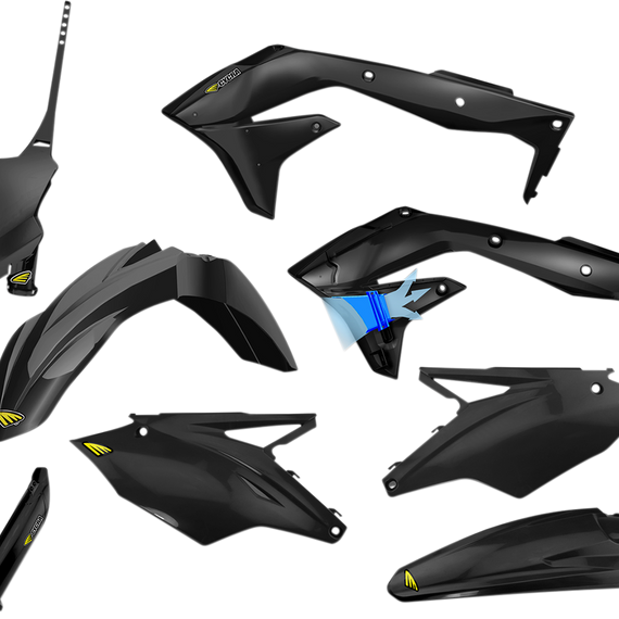 Caracteristicas: Include Performance front fender, Stadium front number plate, Powerflow radiator shrouds, side panels, Powerflow rear fender and fork guards Injection-molded for precise fit and finish Made in the U.S.A.
