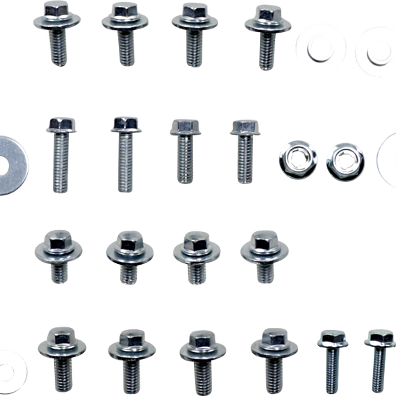 • Includes bolts for front and rear fenders, fork guards, front number plates, seats, side panels and radiator shrouds