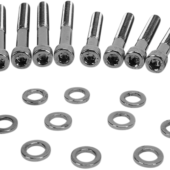 Caracteristicas: Complete motor sets for Big Twin include bolts for primary, cam, cam sensor, derby, rocker box, transmission top, transmission side, lifter block and clutch covers Complete motor sets for XL include bolts for primary, cam, derby, lifter block, points cover, rocker box and engine case Made in the U.S.A.