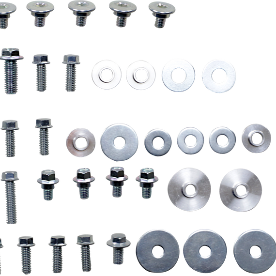• Include bolts for front and rear fenders, fork guards, front number plates, seats, side panels and radiator shrouds