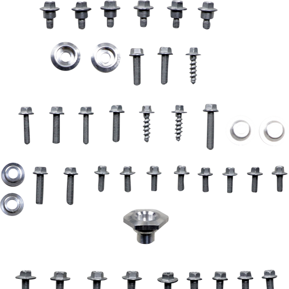 Caracteristicas: Bolt Kits for KTM body plastics Includes bolts for front and rear fenders, fork guards, front number plates, seats, side panels and radiator shrouds