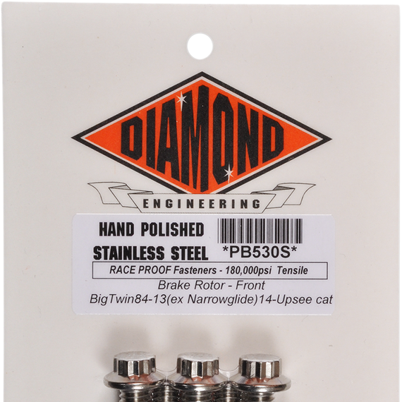 Caracteristicas: Polished to a mirror finish Custom 450 stainless steel 12-Point bolts have 180,000 psi tensile, which is 20% stronger than Grade 8 UNJ3A rolled threads Belt/sprocket kits are ideal for high-performance applications; Race Proof® belt/sprocket bolts can withstand as much horsepower as you can throw at them - many Harley Top Fuel racers use these same bolts without fail for over a decade Made in the U.S.A.