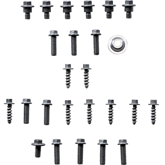 Caracteristicas: Husqvarna bolt kits for body plastics Include bolts for front and rear fenders, fork guards, front number plates, seats, side panels and radiator shrouds