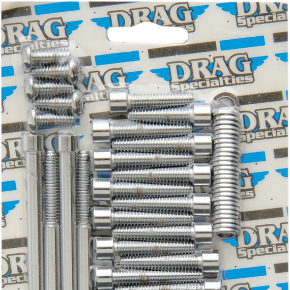 Caracteristicas: Socket-head bolt sets to meet virtually any custom need Complete motor sets for 07 and later Big Twin include bolts for primary, cam, cam sensor, derby, rocker box, transmission top, transmission side, lifter block and clutch covers Complete motor sets for 87-94 Big Twin include bolts for cam, primary, point, clutch, inspection and chain covers, lifter base, inner primary, top front and rear motor mounts, timing plug and header mount screws Complete motor sets for 04 and later XL include bolts for primary, cam, derby, lifter block, points cover, rocker box and engine case Complete motor sets for 86-03 XL include bolts for cam, primary, generator, sprocket, rocker box, top motor mount, lifter base, point or magneto cover Made in the U.S.A.