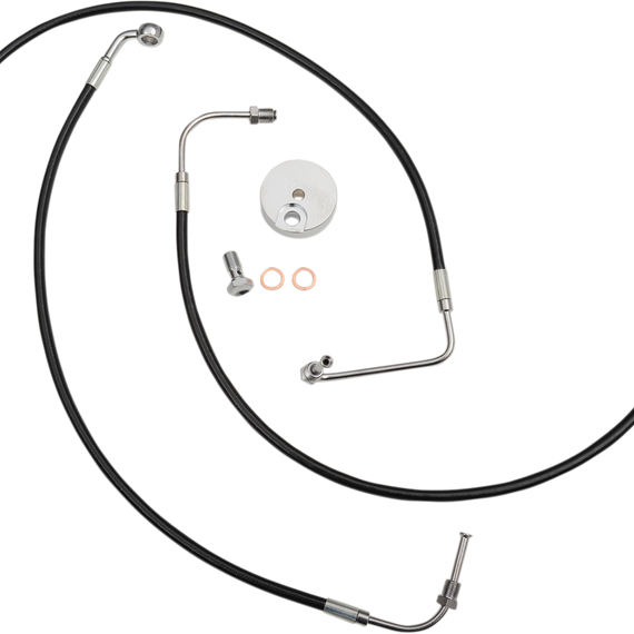 • Include black vinyl throttle and idle cables (except 08-16 Dressers), black vinyl clutch cable/clutch line and black stainless brake lines with chrome fittings, banjo bolts and crush washers
