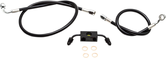 • Include black vinyl throttle and idle cables (except 08-16 Dressers), black vinyl clutch cable/clutch line and black stainless brake lines with chrome fittings, banjo bolts and crush washers
