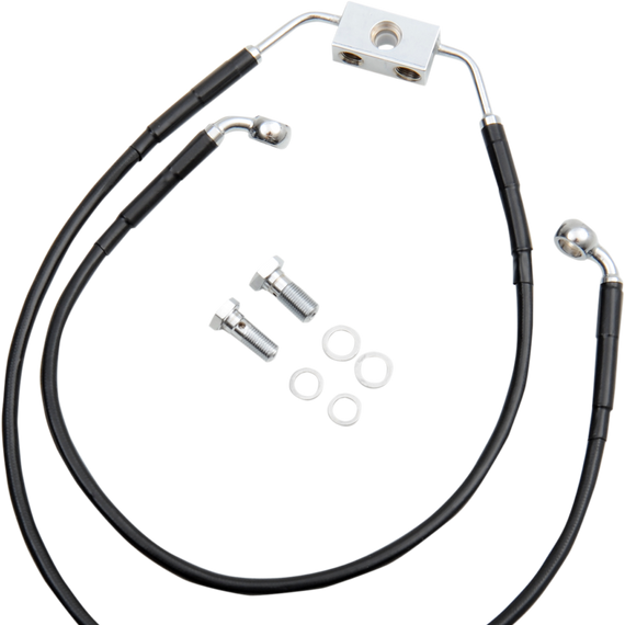 Caracteristicas: Features black vinyl-coated braided extended lines with chrome steel fittings Made in the U.S.A. All measurements are approximate