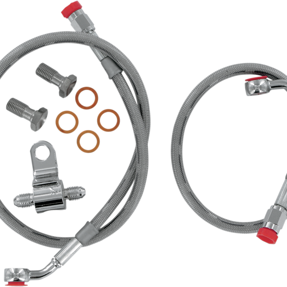 Caracteristicas: Meet DOT and TÜV specifications, allowing on-road usage worldwide Hose features clear PVC coating, PTFE inner liner, and premium stainless steel braided outer PVC hose coating adds great looks, abrasion protection to expensive parts, and resistance to damaging UV rays PTFE liner is an inert material, compatible with all hydraulic and brake fluids; has a heat range of -158°F to 500°F Stainless steel braided outer is superior in pressure rating, flame resistance and volumetric expansion to all other materials, resulting in unmatched stopping power All hardware is beautifully chromed mild steel with a 96-hour salt spray rating Come complete in attractive clamshell packaging with installation hardware