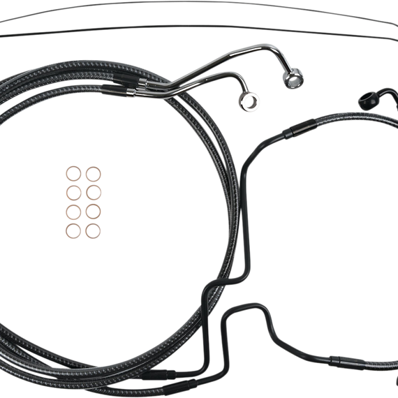 Caracteristicas: KARBONFIBR braid is created from distinct black tone colors, blended and interwoven in such a way that it mimics the look of high-tech carbon fiber Brake line kits consist of a direct fit lower assembly used in conjunction with alternative length upper lines Brake lines are designed to follow the same routing path as OEM lines AN-3 connections make for easy installations Extended lines allow calipers to be moved to different mounting locations, including radial brake caliper relocations and incorporate EZ-Align banjos for easy installation Compliant with all DOT FMVSS-106 requirements Assembled in the U.S.A.
