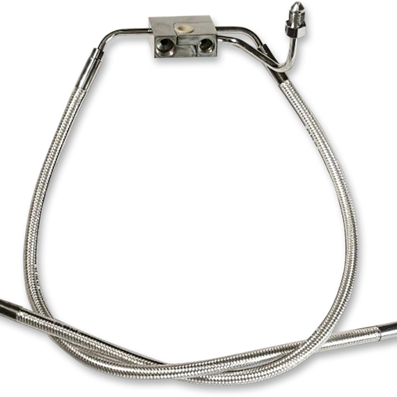 Caracteristicas: If replacing the stock lower brake line assembly on 2018+ dual disc Softails, an adapter is NOT needed. Using -3AN fittings, the upper line connects directly to the Magnum lower assembly Brake lines are constructed with PTFE inner tubing, DuPont™ Kevlar® aramid fiber, premium Signature Magnum braids and an outer PVC jacket to greatly reduce line expansion Manufactured with an enhanced construction designed to be compatible with Harley-Davidson ABS requirements for stock and alternate length brake lines Brake kits consist of a direct fit lower assembly used in conjunction with alternative length upper lines 3AN connections make for easy installations Assembled in the U.S.A.
