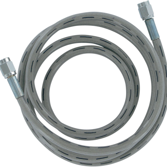 Caracteristicas: Stainless steel braid is superior in pressure rating, flame resistance and volumetric expansion to all other materials, including aramid, resulting in unmatched stopping power PTFE liner is an inert material, compatible with all hydraulic and brake fluids and has a heat range of -158°F to 500°F Clear-coated lines feature PVC coating and beautifully chromed fittings Ebony lines feature PVC coating and matte-black zinc-plated fittings