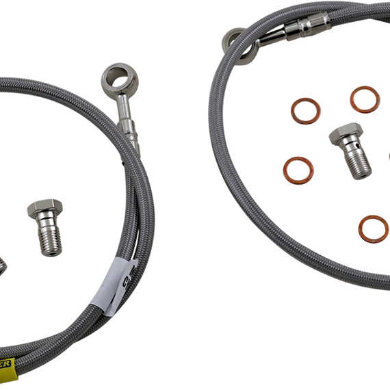Caracteristicas: Requires less pressure at the lever, allowing the rider to use less force while stopping the bike faster and with better feel Fittings come from the factory pre-positioned but can swivel 180° if necessary to make the installation process easier Include a clear outer coating which protects the bike from scratches and the lines from humidity Complete with all necessary banjo bolts and washers and ready to install