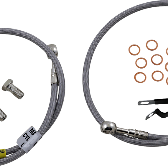 Caracteristicas: Requires less pressure at the lever, allowing the rider to use less force while stopping the bike faster and with better feel Fittings come from the factory pre-positioned but can swivel 180° if necessary to make the installation process easier Include a clear outer coating which protects the bike from scratches and the lines from humidity Complete with all necessary banjo bolts and washers and ready to install