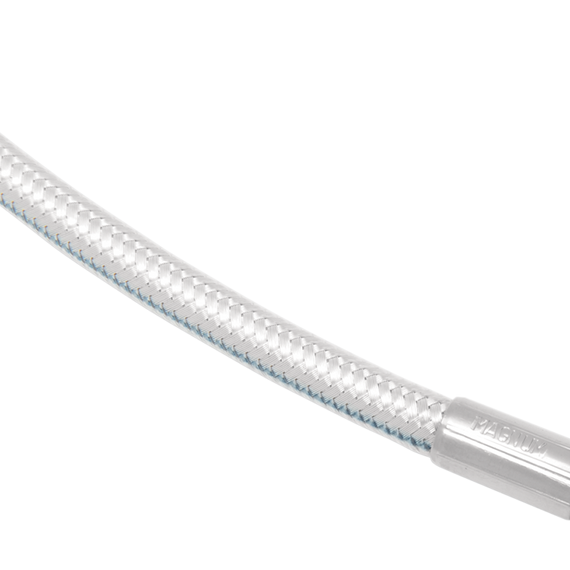 Caracteristicas: Inner PTFE tubing with 100% aramid coverage provides the ultimate in high performance by greatly reducing line expansion for excellent brake control and safety ratings Crystal-clear outer jacket offers exceptional protection against scuffing paint or chrome and will never discolor Braid color and weave matches on all Magnum control cables and brake lines Made in the U.S.A. Banjo bolts, fittings and crush washers sold separately