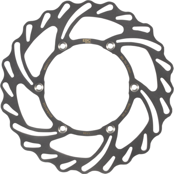 Caracteristicas: Super-trick looking contour brake rotor profile Heat-treated stainless steel Rotor design reduces unsprung weight Made from German mill-rolled heat-treated steel No vent holes in the pad sweep area to improve pad and disc wear for enduro use