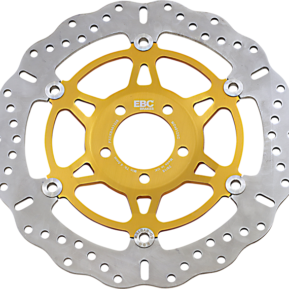 Caracteristicas: Floating brake disc with radical, profiled contour brake rotor ring Brake disc design reduces weight and increases brake effect Brake disc center hubs are forged aluminum Rotor construction uses high-friction billet steel Universal left- or right-side application