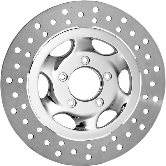 Caracteristicas: CNC precision cut with the highest quality billet aluminum carrier wrapped with a 420 stainless steel band Designed specifically for use with RC wheels only Made in the U.S.A. Must use front caliper bracket or aftermarket caliper designed for 13" rotor.
