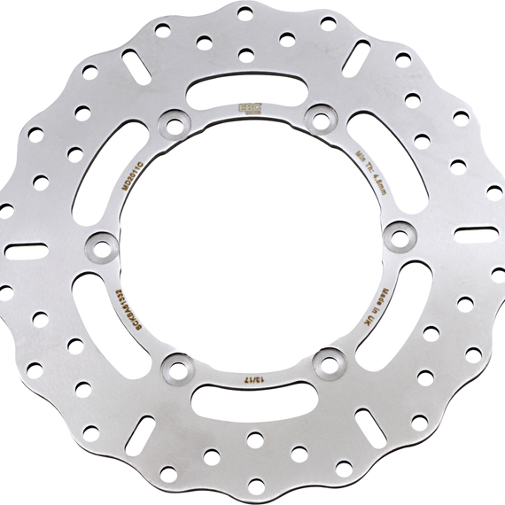 Caracteristicas: Floating brake disc with a radical, profiled contour brake rotor ring Brake disc design reduces weight and increases brake effect Brake disc center hubs are forged aluminum Rotor construction uses high-friction billet steel Universal left-side or right-side application Select front rotors available with SD-System™ of square-sided buttons that allow the rotor to expand inwards and outwards unrestrained for perfect rotor functionality at any speed or load and increased durability