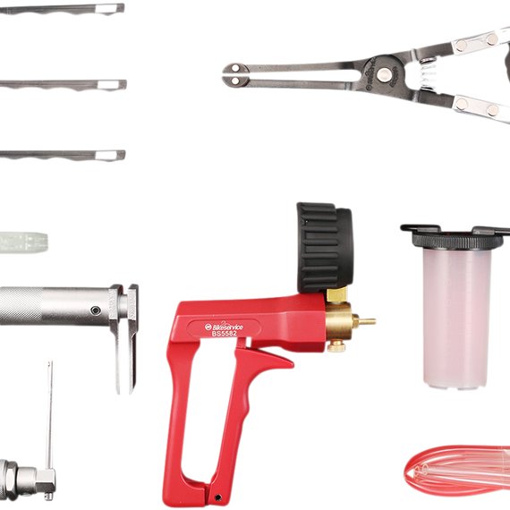 Caracteristicas: Brake service kit includes brake caliper piston pliers, vacuum pump and brake bleeding kit, disc brake pad spreader, brake fluid tester, as well as three detailing brushes