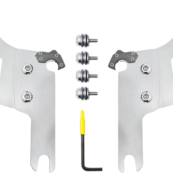 Caracteristicas: Angle Adjustable Model specific no-hassle installation, then on-off without tools. A pair of glass-filled nylon latches lock it down until the spring loaded "Trigger-Locks" are intentionally disengaged. Made exclusively of electrocoated aluminum and stainless steel, with stainless steel fasteners. Anchoring hardware is the same for all windshields and fairings for each bike. Made in the U.S.A. - Made in Memphis!