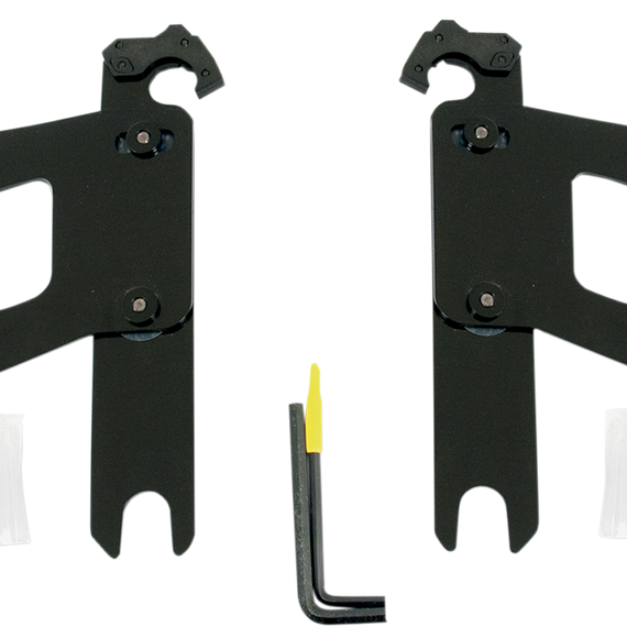 Caracteristicas: Angle Adjustable Model specific no-hassle installation, then on-off without tools. A pair of glass-filled nylon latches lock it down until the spring loaded "Trigger-Locks" are intentionally disengaged. Made exclusively of electrocoated aluminum and stainless steel, with stainless steel fasteners. Anchoring hardware is the same for all windshields and fairings for each bike. Made in the U.S.A. - Made in Memphis!