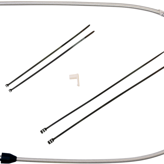 Caracteristicas: Braided upper clutch cables economically replace the OE upper cable section Easily and quickly connects to the existing lower cable section Significantly reduces installation time, plus there's no need to drain transmission fluid Unique design reuses OE cover and housing parts Braid color and weave match on all Magnum control cables and brake lines Crystal clear outer jacket will never discolor and provides exceptional protection against scuffing paint and chrome Low effort, high efficiency cable design meets or exceeds OE specifications for fitment, construction and endurance Made with anti-friction inner liners and factory lubricated for smooth, consistent and long-lasting operation Assembled in the U.S.A.