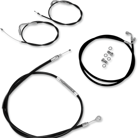 Caracteristicas: Custom and complete kits take the guesswork and effort out of selecting the correct cable and line lengths for your bike Each kit comes complete with extended-length brake, clutch and throttle/idle cables (choke cable included when applicable) Stainless kits have cables and lines with a clear-coated exterior, which improves appearance and protects components from abrasion Black cables have a black vinyl coating similar to the finish on most stock motorcycles and come with black fittings