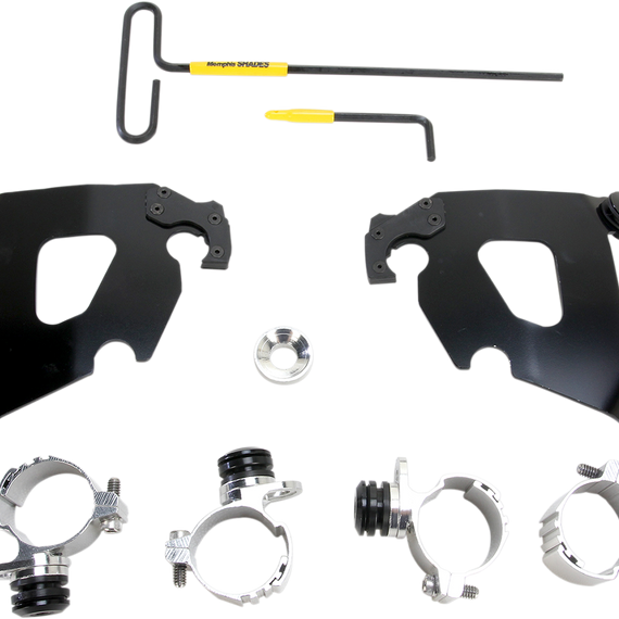 Caracteristicas: Angle Adjustable Model specific no-hassle installation, then on-off without tools. A pair of glass-filled nylon latches lock it down until the spring loaded "Trigger-Locks" are intentionally disengaged. Made exclusively of electrocoated aluminum and stainless steel, with stainless steel fasteners. Anchoring hardware is the same for all windshields and fairings for each bike. Made in the U.S.A. - Made in Memphis!