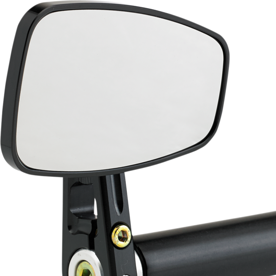 Caracteristicas: Features a convex mirror glass CNC machined from billet aluminum (not cast), light-weight, strong, and fully adjustable in every direction to fit just about everyone Super solid units reduce vibration and make for a clearer image in the mirror With little modification, these units can be mounted through the ends of most existing grips, by drilling or boring the grip end Made in USA