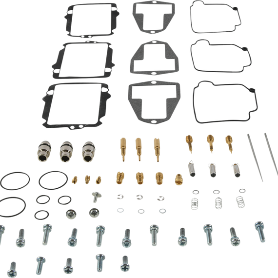 Caracteristicas: Kit includes all necessary O-rings, gaskets, jets, needle, mixture screw, float bowl screws, float valve needle and seat (needle jet and other pressed-in jets are not included in kit) NBR rubber material is used on all O-rings and rubber gaskets; NBR has excellent resistance to the ethanol used in today's fuels Applications that use paper float bowl gaskets are upgraded to High Performance Interference Gasket material Models with multiple carburetors include components to repair all carburetors OEM jet sizes and slide needles are included in the kit