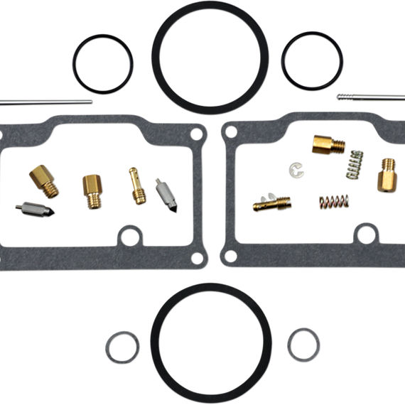 Caracteristicas: Kit includes all necessary O-rings, gaskets, jets, needle, mixture screw, float bowl screws, float valve needle and seat (needle jet and other pressed-in jets are not included in kit) NBR rubber material is used on all O-rings and rubber gaskets; NBR has excellent resistance to the ethanol used in today's fuels Applications that use paper float bowl gaskets are upgraded to High Performance Interference Gasket material Models with multiple carburetors include components to repair all carburetors OEM jet sizes and slide needles are included in the kit