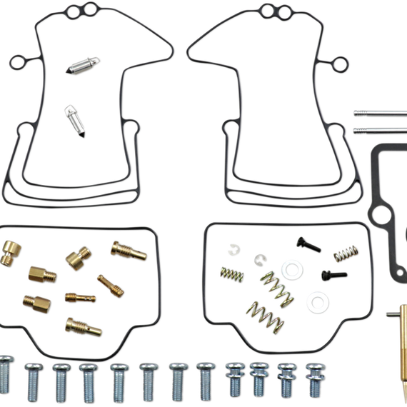 Caracteristicas: Kit includes all necessary O-rings, gaskets, jets, needle, mixture screw, float bowl screws, float valve needle and seat (needle jet and other pressed-in jets are not included in kit) NBR rubber material is used on all O-rings and rubber gaskets; NBR has excellent resistance to the ethanol used in today's fuels Applications that use paper float bowl gaskets are upgraded to High Performance Interference Gasket material Models with multiple carburetors include components to repair all carburetors OEM jet sizes and slide needles are included in the kit