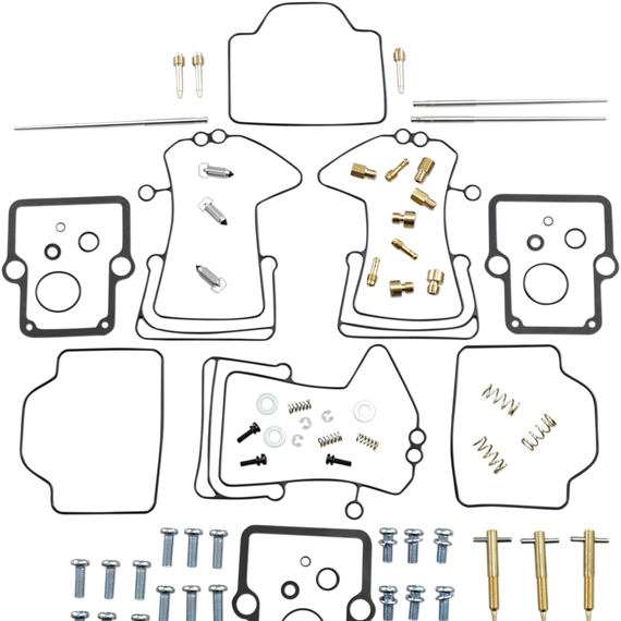 Caracteristicas: Kit includes all necessary O-rings, gaskets, jets, needle, mixture screw, float bowl screws, float valve needle and seat (needle jet and other pressed-in jets are not included in kit) NBR rubber material is used on all O-rings and rubber gaskets; NBR has excellent resistance to the ethanol used in today's fuels Applications that use paper float bowl gaskets are upgraded to High Performance Interference Gasket material Models with multiple carburetors include components to repair all carburetors OEM jet sizes and slide needles are included in the kit