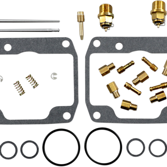 Caracteristicas: Kit includes all necessary O-rings, gaskets, jets, needle, mixture screw, float bowl screws, float valve needle and seat (needle jet and other pressed-in jets are not included in kit) NBR rubber material is used on all O-rings and rubber gaskets; NBR has excellent resistance to the ethanol used in today's fuels Applications that use paper float bowl gaskets are upgraded to High Performance Interference Gasket material Models with multiple carburetors include components to repair all carburetors OEM jet sizes and slide needles are included in the kit