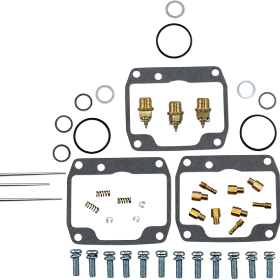 Caracteristicas: Kit includes all necessary O-rings, gaskets, jets, needle, mixture screw, float bowl screws, float valve needle and seat (needle jet and other pressed-in jets are not included in kit) NBR rubber material is used on all O-rings and rubber gaskets; NBR has excellent resistance to the ethanol used in today's fuels Applications that use paper float bowl gaskets are upgraded to High Performance Interference Gasket material Models with multiple carburetors include components to repair all carburetors OEM jet sizes and slide needles are included in the kit
