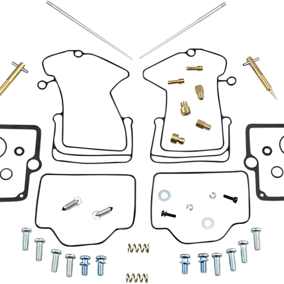 Caracteristicas: Kit includes all necessary O-rings, gaskets, jets, needle, mixture screw, float bowl screws, float valve needle and seat (needle jet and other pressed-in jets are not included in kit) NBR rubber material is used on all O-rings and rubber gaskets; NBR has excellent resistance to the ethanol used in today's fuels Applications that use paper float bowl gaskets are upgraded to High Performance Interference Gasket material Models with multiple carburetors include components to repair all carburetors OEM jet sizes and slide needles are included in the kit