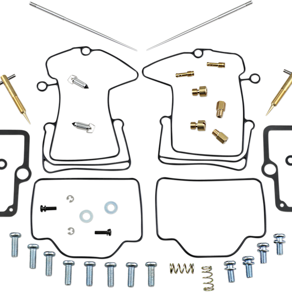 • Kit includes all necessary O-rings, gaskets, jets, needle, mixture screw, float bowl screws, float valve needle and seat (needle jet and other pressed-in jets are not included in kit)