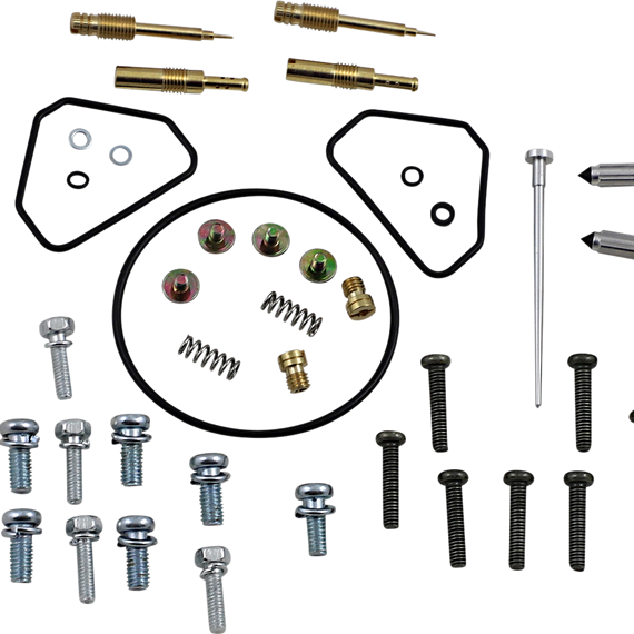 • Kit includes all necessary O-rings, gaskets, jets, needle, mixture screw, float bowl screws, float valve needle and seat (needle jet and other pressed-in jets are not included in kit)